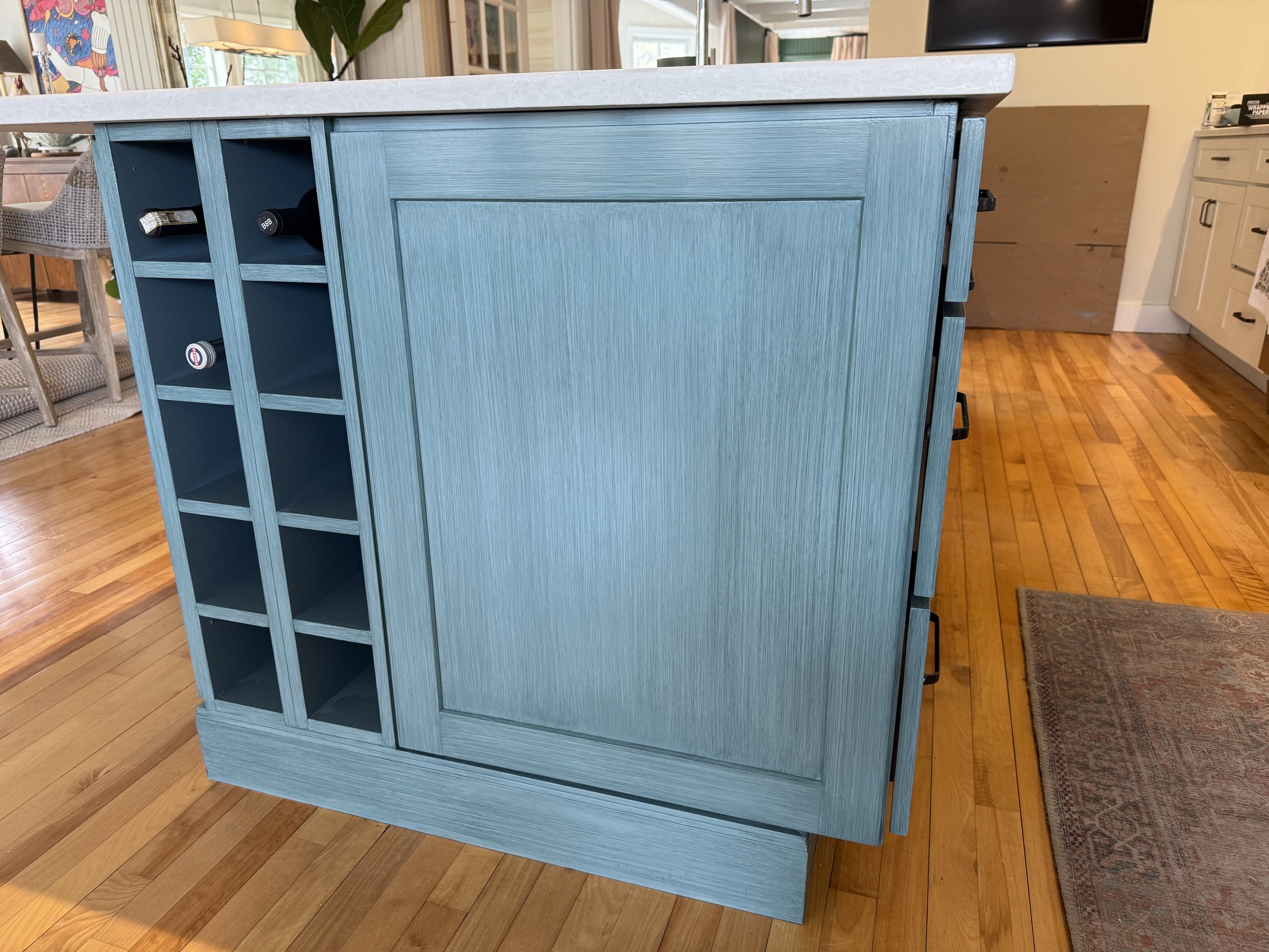 Red Combed Wall and Cabinet Treatment