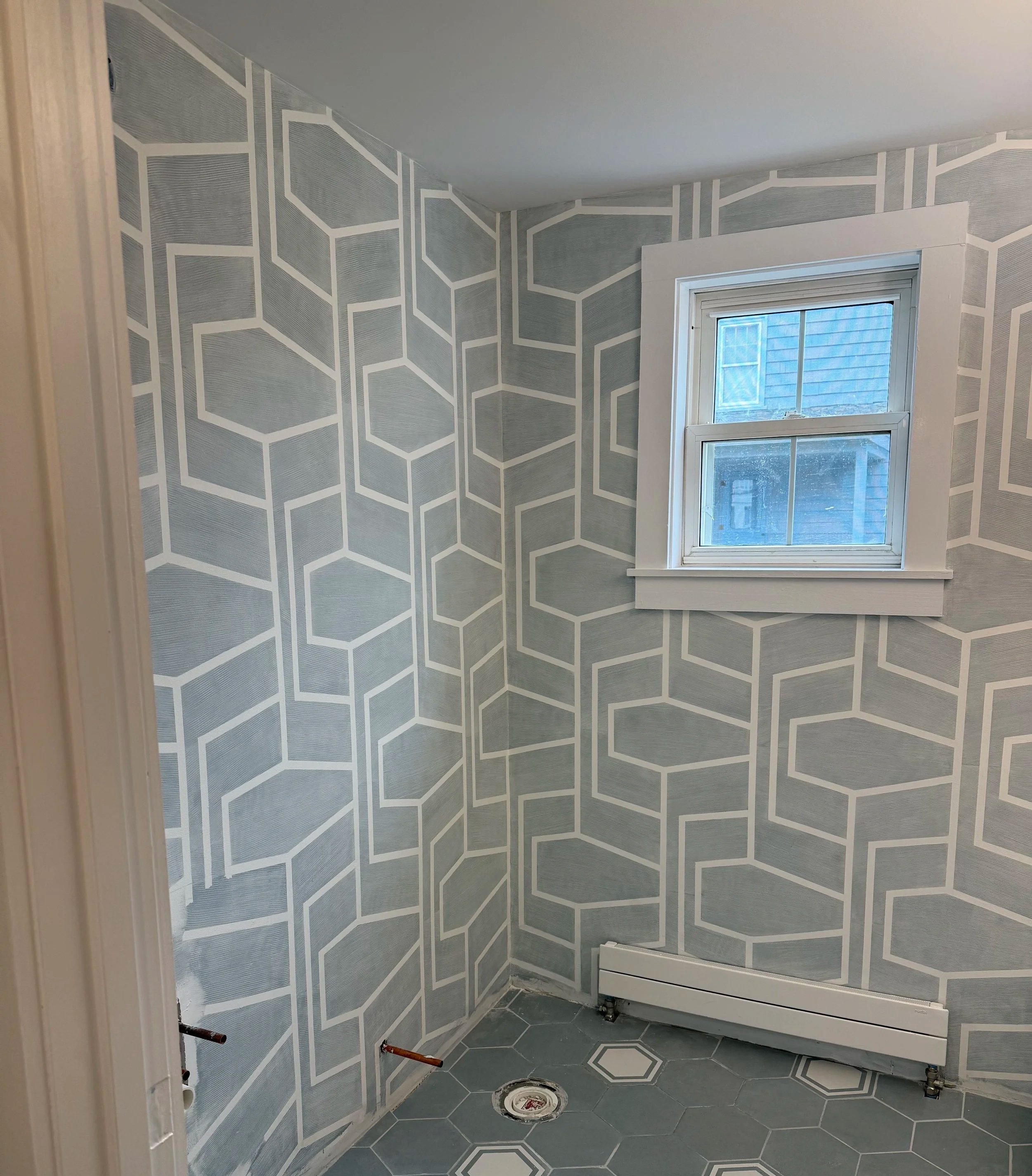 Subtle Wall Stencil, Bold Painted Floor